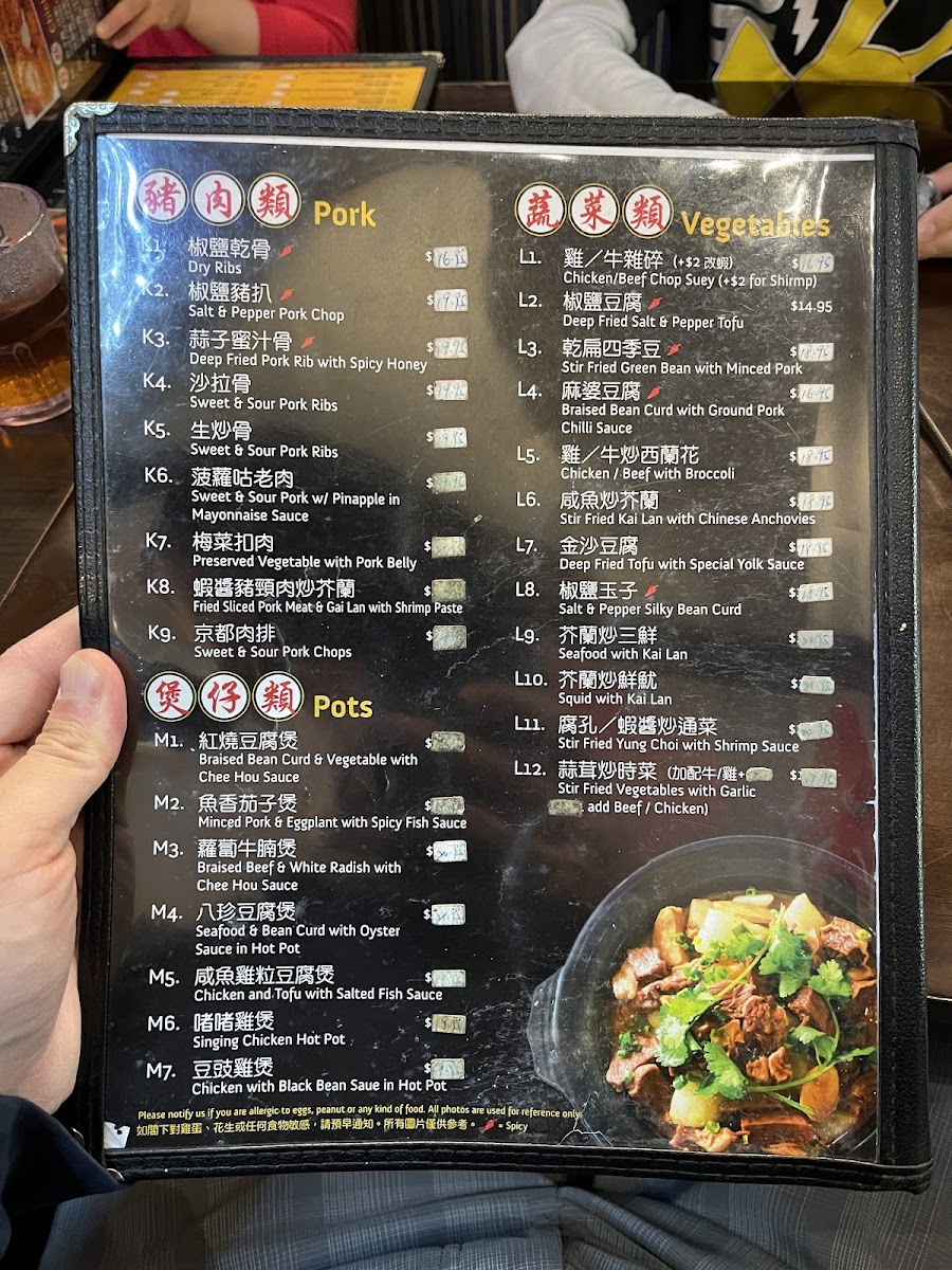 There was more variety here than 852 and the staff was definitely more friendly and very big portions for the price, everything was really good. The stuffed chicken wings and deep fried pork intestines were really crispy .