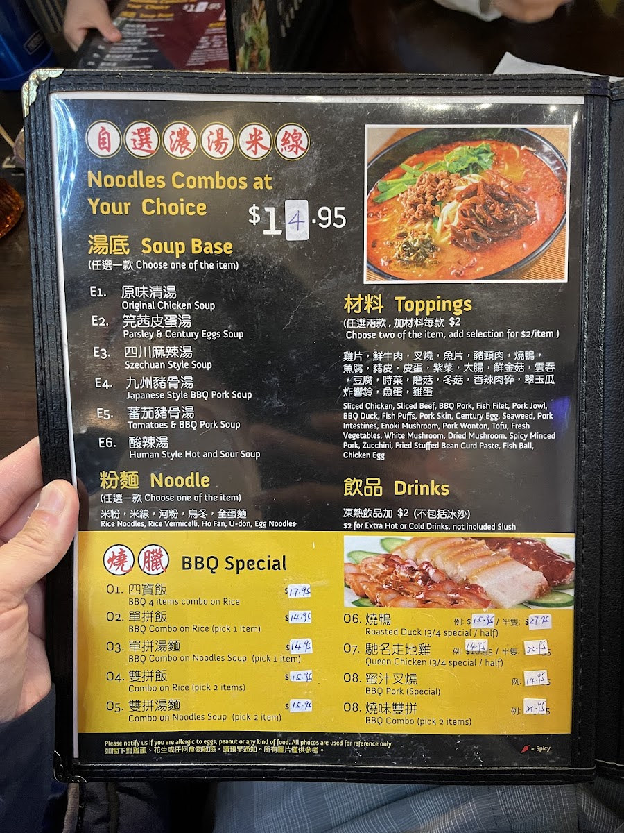 Great place! The food came out fast and was fresh and hot. Portion sizes are large and very affordable. 8-10 for a big bowl of noodles. They add a lot of noodles and toppings, they are really generous. We also had Chinese long donut with rice crepe, and a few drinks. Overall a very good restaurant and I will definitely come here again.